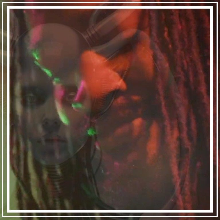 While my own association with these leading-edge weirdos is perhaps most appropriately labelled as “metamodern spirituality,” there are also many other active tentacles. Some of these tentacles are focused on critical philosophy and socio-political transformation. One of that “some of these” is Black Metamodernism. And the figure most closely associated with the term is probably the British post-Hegelian theorist, musician, and activist Germane Marvel (pictured below with a faintly superimposed face of an alien robot).