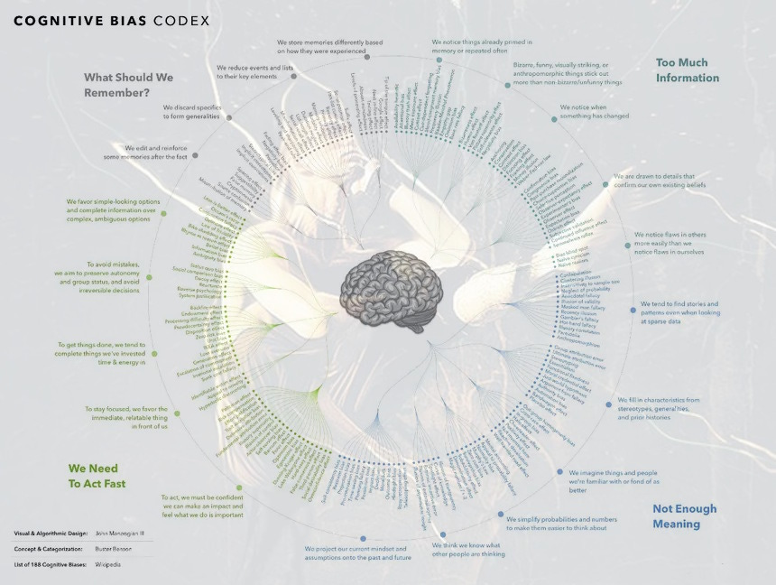 All of these cognitive biases, which neuropsychology has now mapped out in a pretty thorough way, seem to rely on a shared assumption that leads to misinterpreting the task. The assumption is that all values are the same value. True. Good. Recent. Easy. Familiar. Famous. Tall. Official.